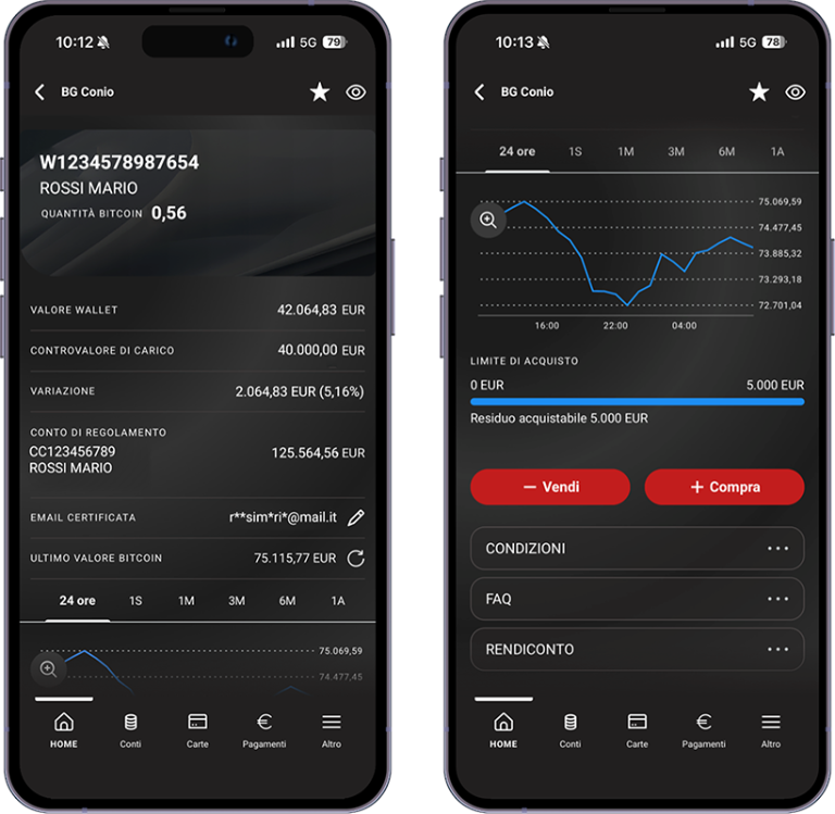 BG Conio consente di effettuare compravendita di Bitcoin, in totale autonomia, direttamente mediante il proprio conto corrente attraverso l’App di Mobile Banking.
